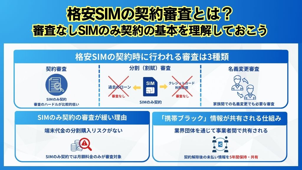 格安SIM契約時にどのような審査が行われるのかを整理し、なぜ審査なしかつSIMのみの契約が可能なのかを解説します。